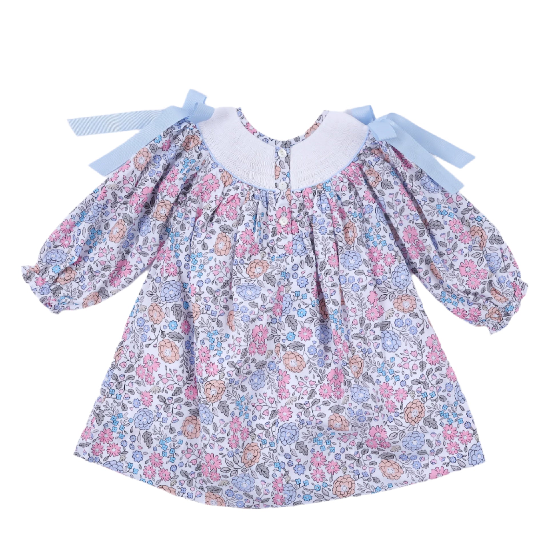 This child Of God smock dress features a beautiful floral design, with a side tie for added detail. The dress style adds a touch of playfulness, perfect for your little one's wardrobe. Show off their unique style and faith with this charming smock dress.