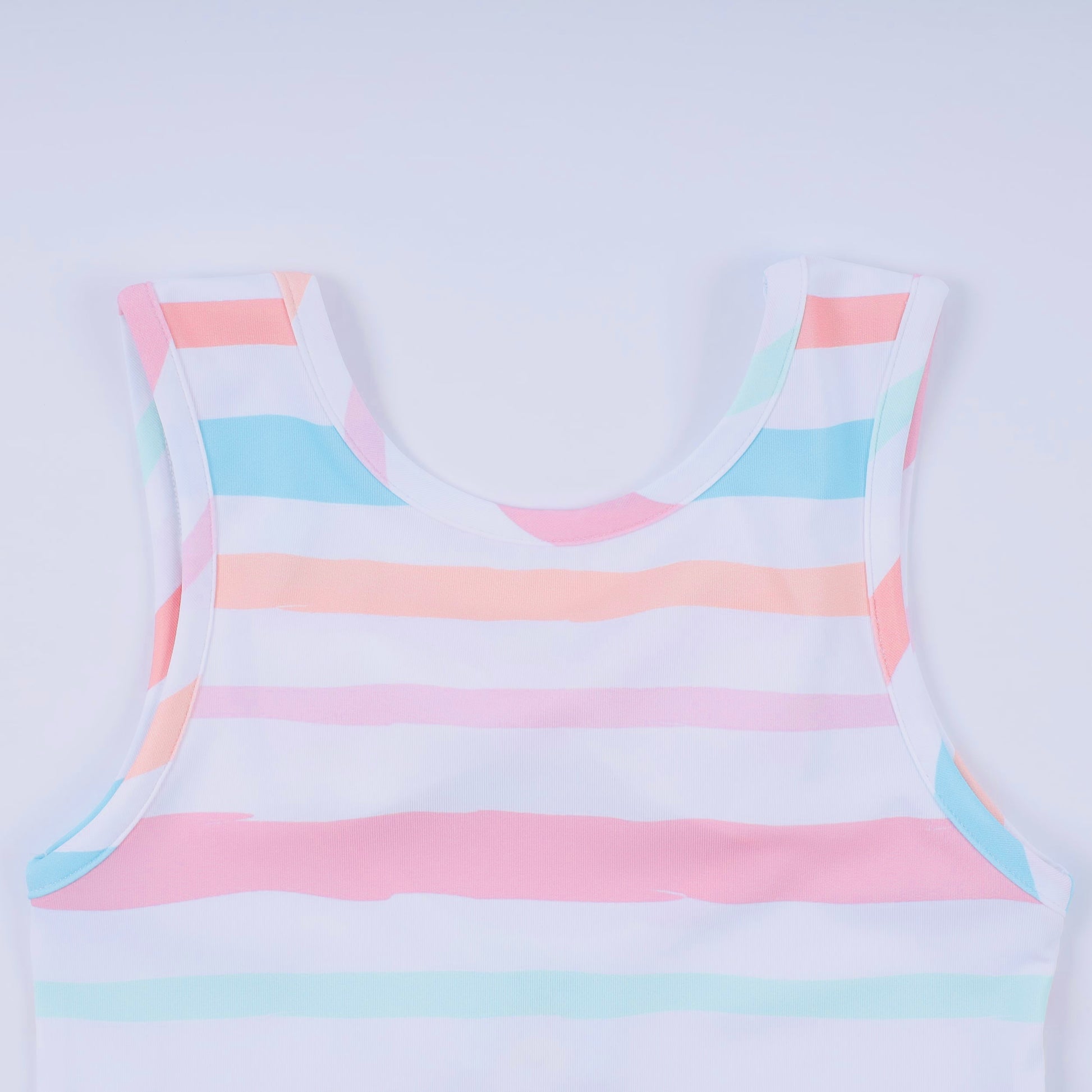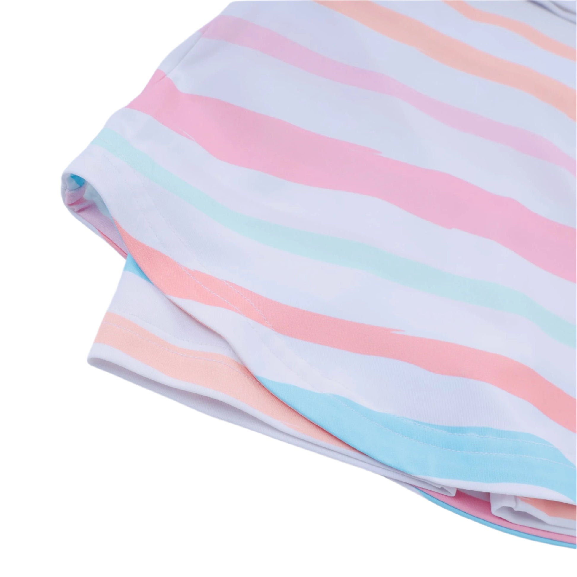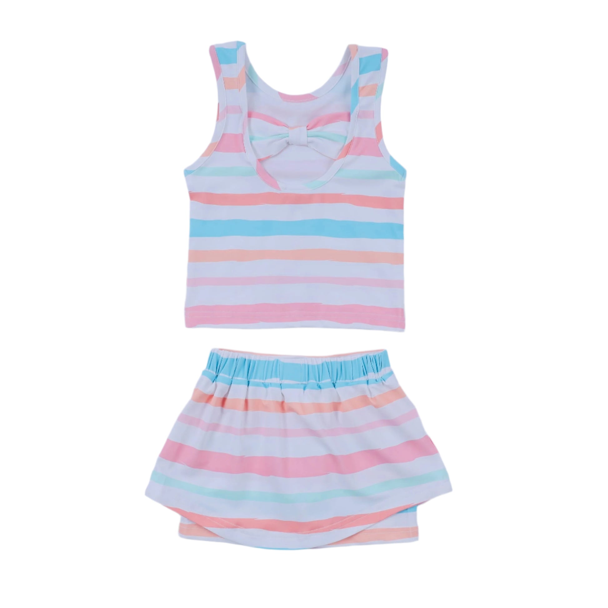 This set features a combination of style and functionality with its tennis pastel color stripe skort design.
