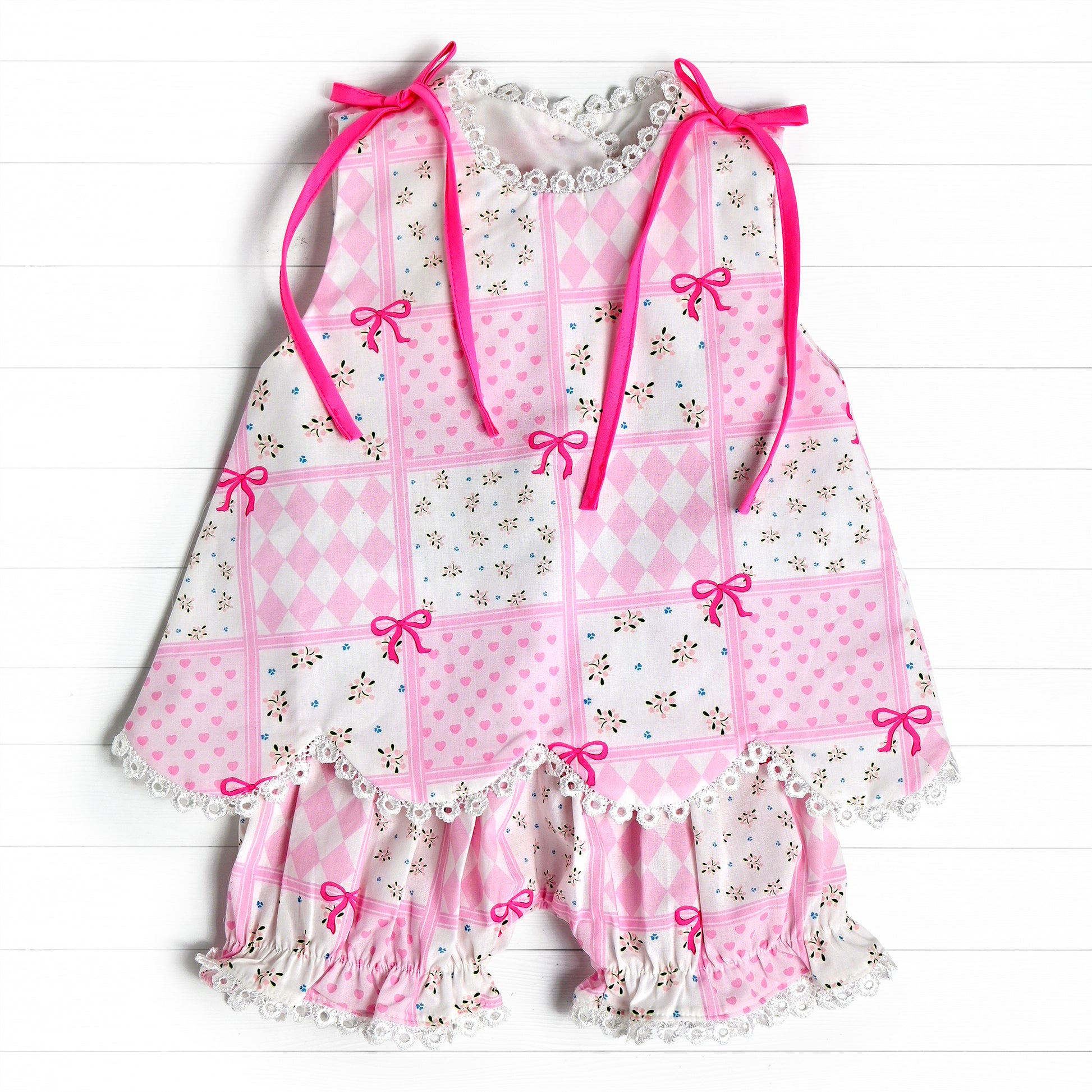 Pink Ties Diamond Heart Bloomer Set, Pink