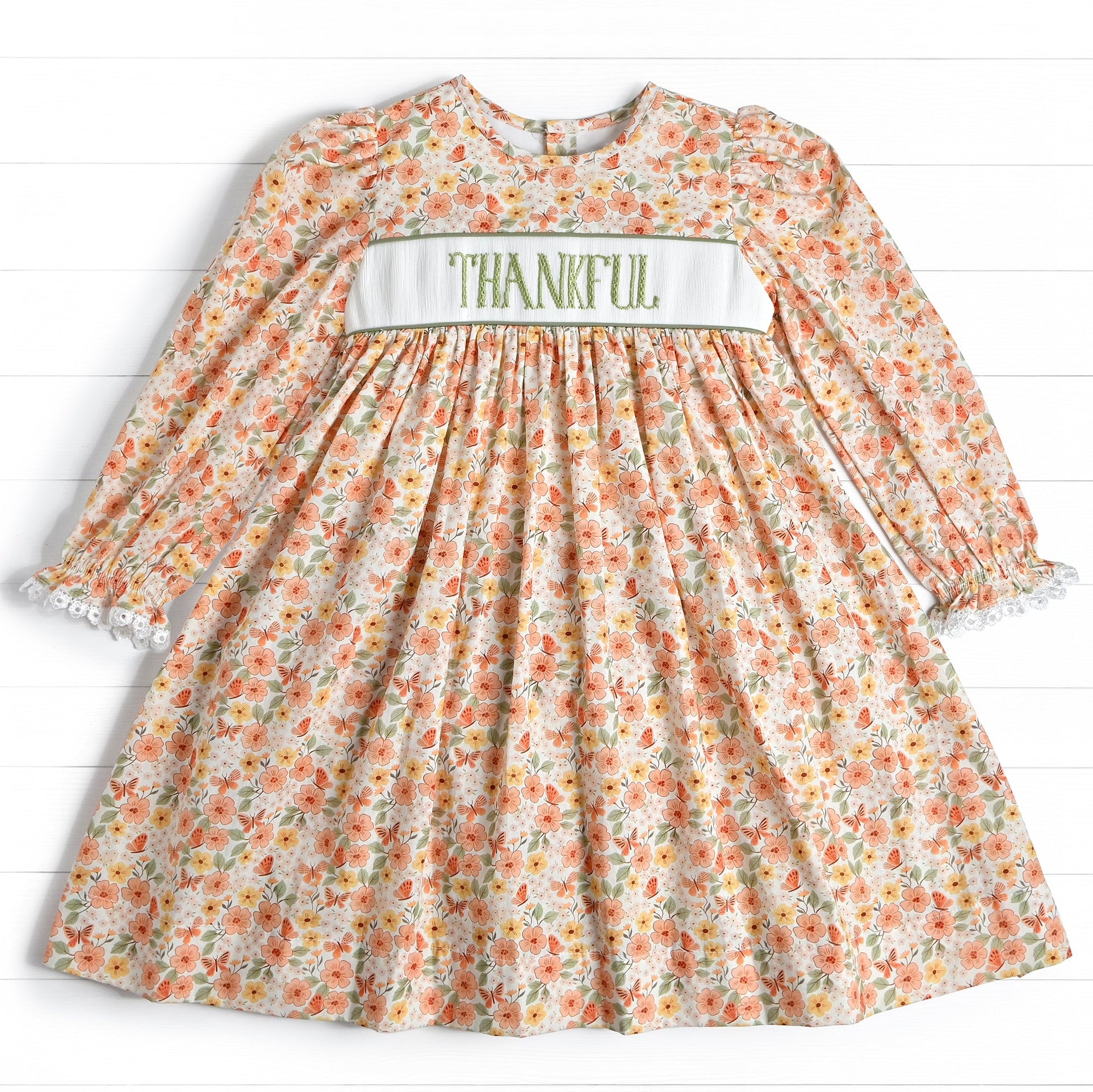 Thankful Smocked Dress, Orange