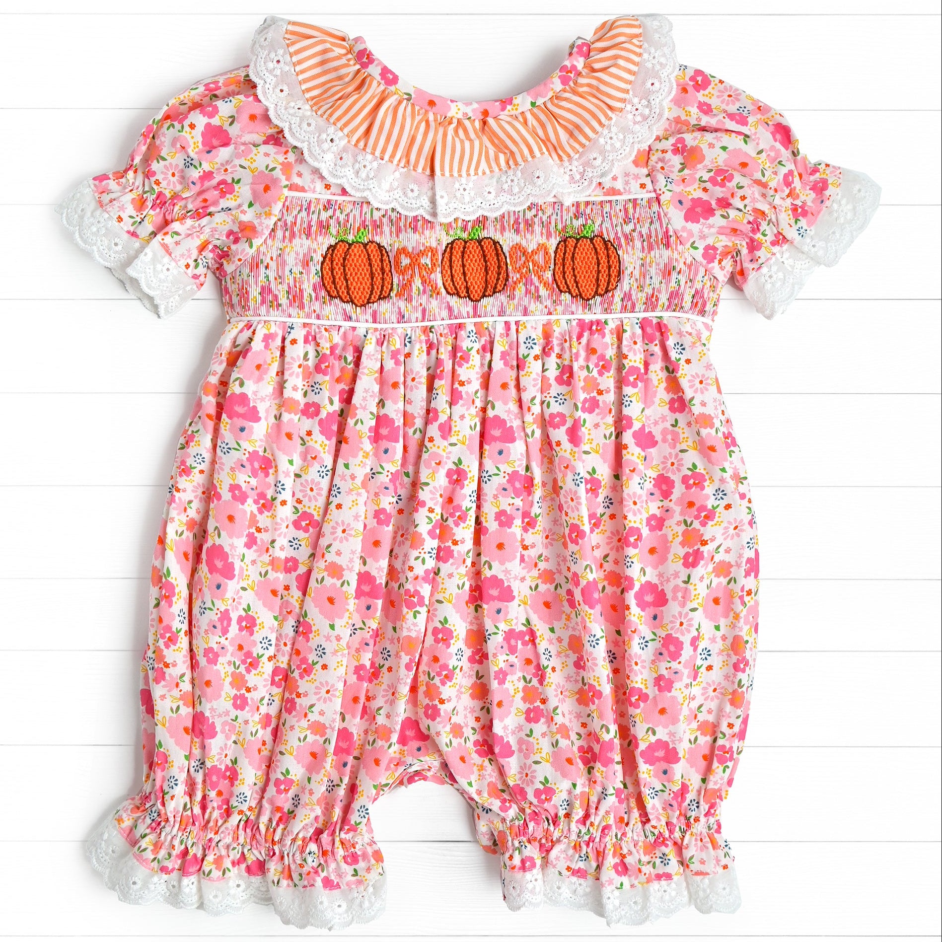 Triple Pumpkin Smocked Bubble, Pink