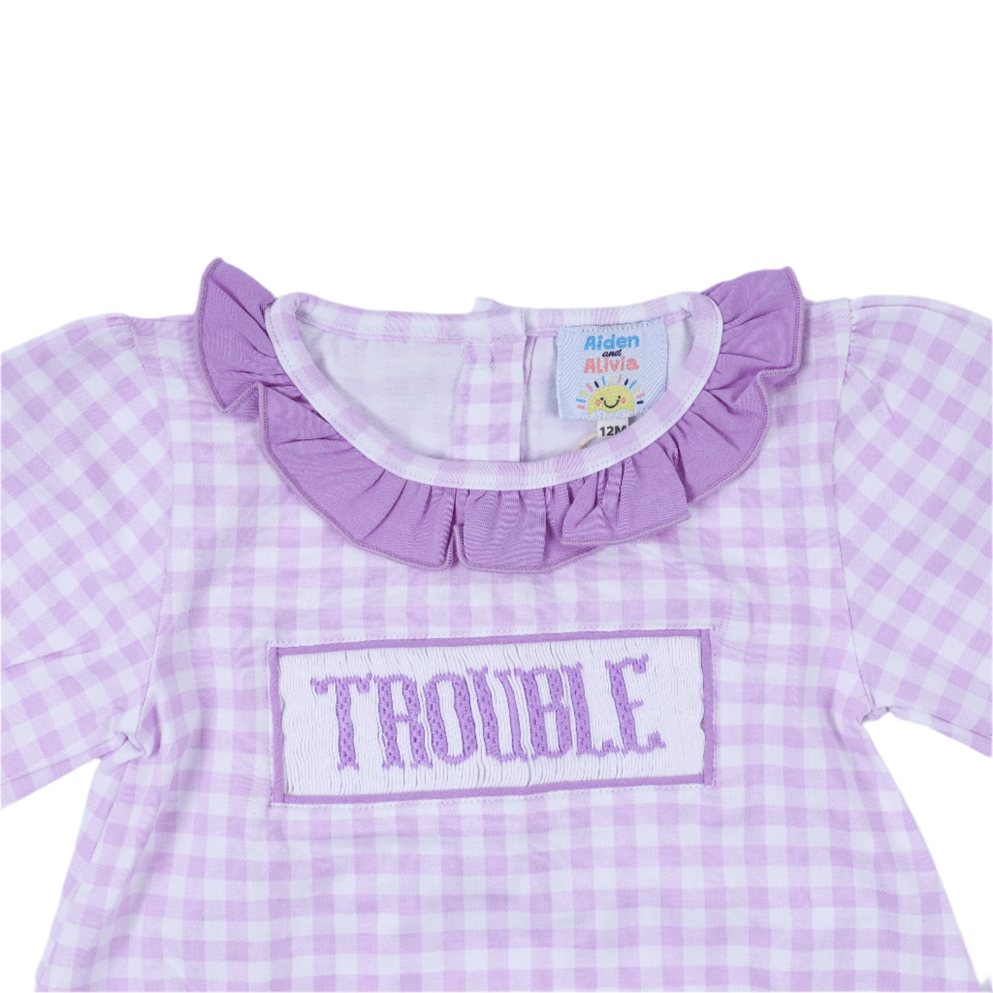 "TROUBLE" Smock Diaper Set, Pale Purple